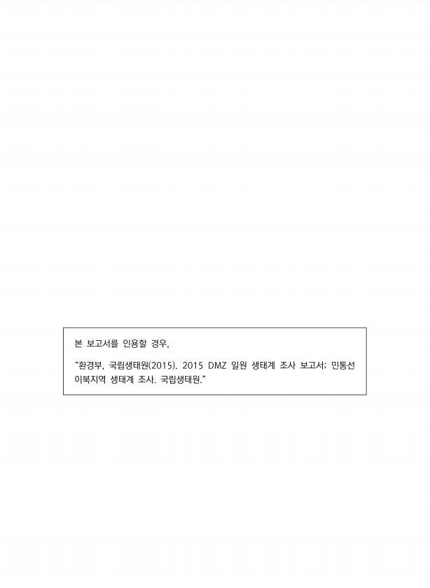 본 보고서를 인용할 경우, “환경부, 국립생태원 2015 2015 DMZ 일원 생태계 조사 보고서; 민통선 이북지역 생태계 조사.국립생태원.”