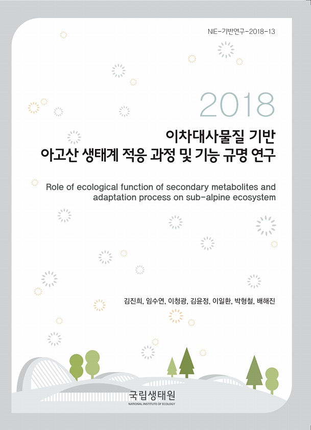 NIE-기반연구-2018-13 김진희, 임수연, 이청광, 김윤정, 이일환, 박형철, 배해진 이차대사물질 기반 아고산 생태계 적응 과정 및 기능 규명 연구 2018 Role of ecological function of secondary metabolites and adaptation process on sub-alpineecosystem