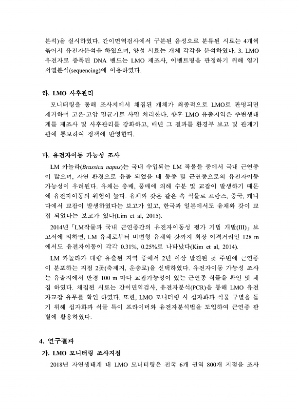 제목 : (2018년) LMO 자연환경 모니터링 및 사후관리 연구. [10]