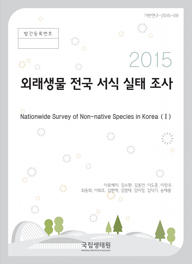 2015 Nationwide Survey of Non-native Species in Korea Ⅰ 기반연구-2015-09 발 간 등 록 번 호 외래생물 전국 서식 실태 조사 이효혜미, 김수환, 김동언, 이도훈, 이창우, 최동희, 이희조, 김현맥, 김영채, 김미정, 김덕기,송해룡