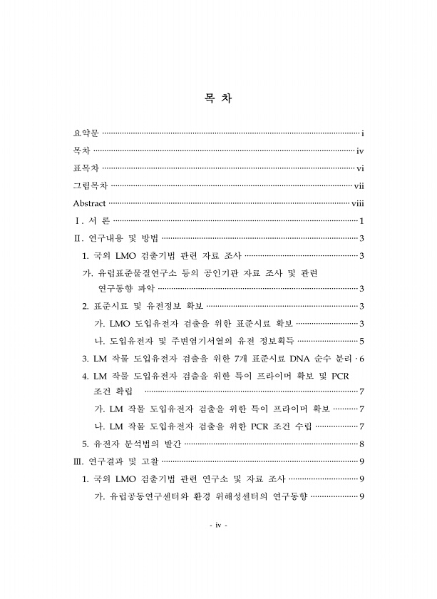 iv 목 차 요약문 ·····················································································································i 목차 ······················································································································iv 표목차 ··················································································································vi 그림목차 ····················...