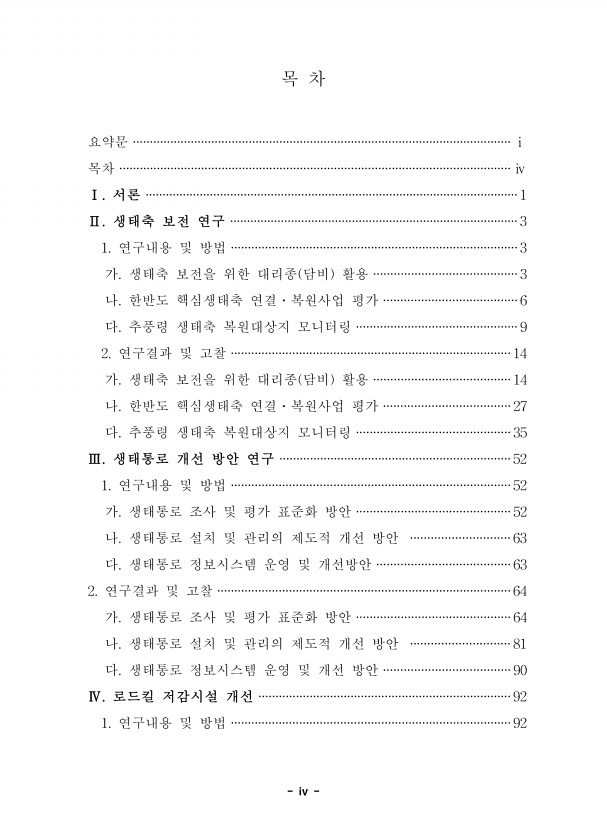 iv 목 차 요약문 ·····················································································································i 목차 ······················································································································iv 표목차 ··················································································································vi 그림목차 ····················...