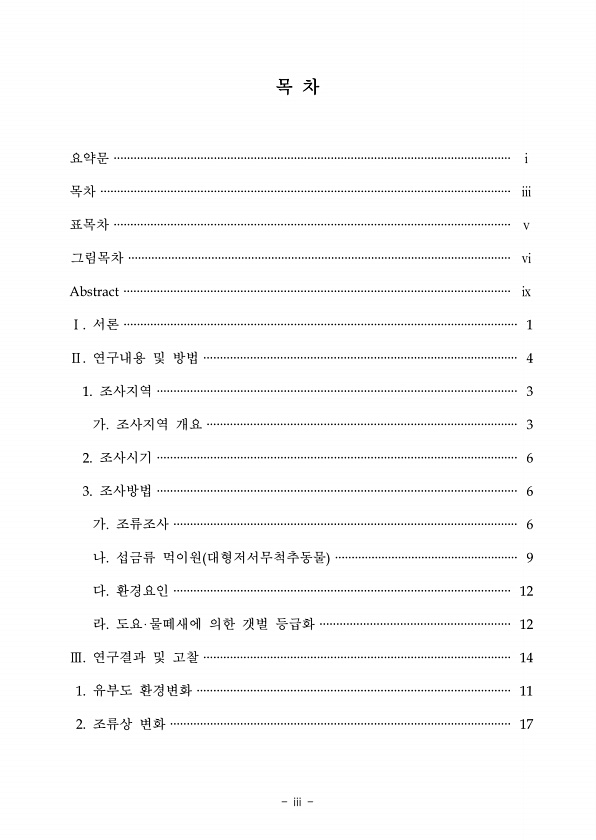 iii 목 차 요약문 ······················································································································· ⅰ 목차 ··························································································································· ⅲ 표목차 ······················································································································· ⅴ 그림목차 ······...