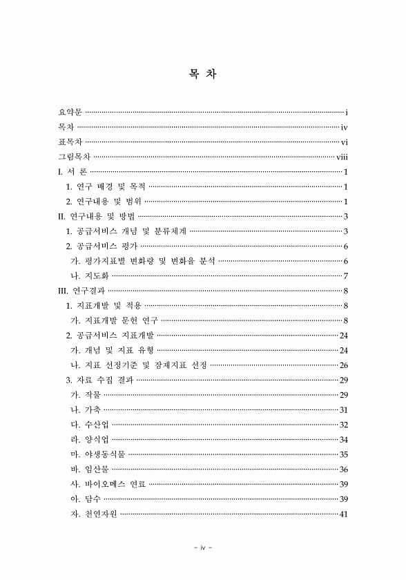 iv 목 차 요약문 ······························································································································i 목차 ································································································································iv 표목차 ···························································································································...
