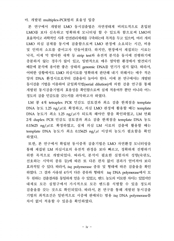 제목 : 유전자재조합생물체(LMO)의 동시 검출을 위한 multiplex-PCR법 개발(III)