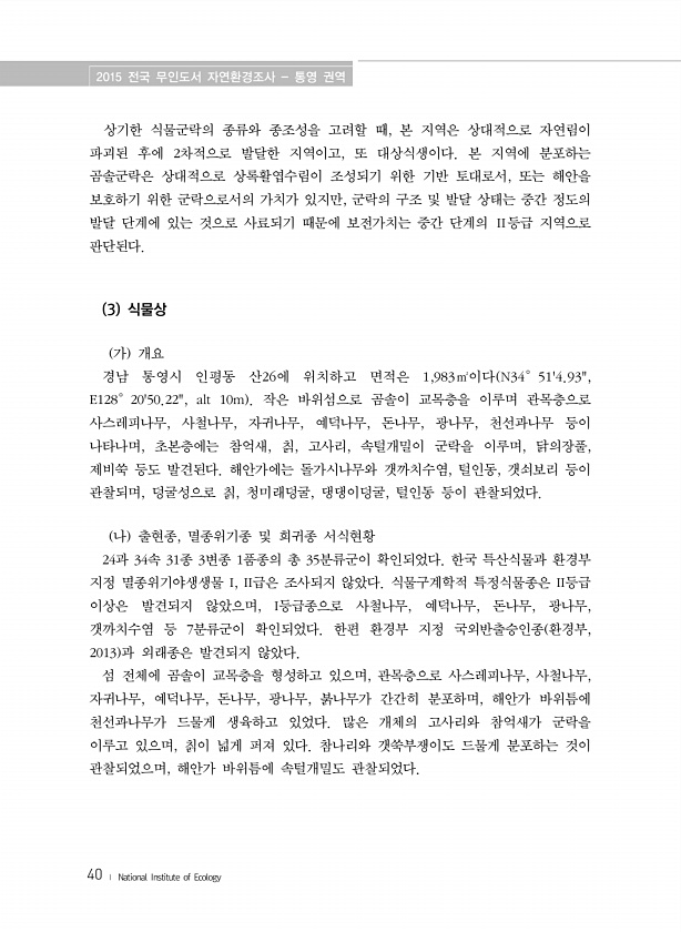 제목 : (2015) 전국 무인도서 자연환경조사 : 통영 권역