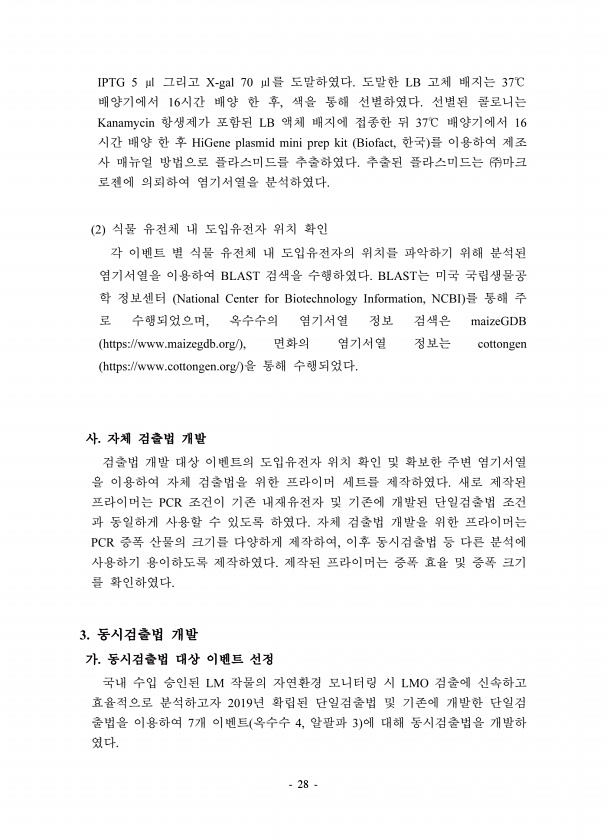 제목 : (2019) 자연생태계 내 유전자변형생물체 선별기술 개발