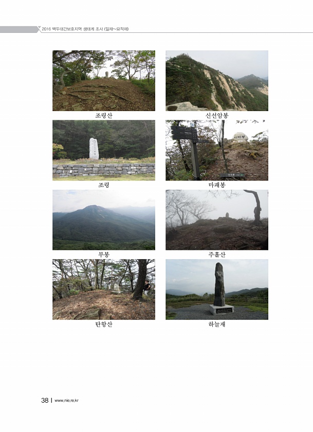2016 백두대간보호지역 생태계 조사 밀재묘적재 38Ⅰwww.nie.re.kr 조령산 신선암봉 조령 마패봉 부봉 주흘산 탄항산하늘재