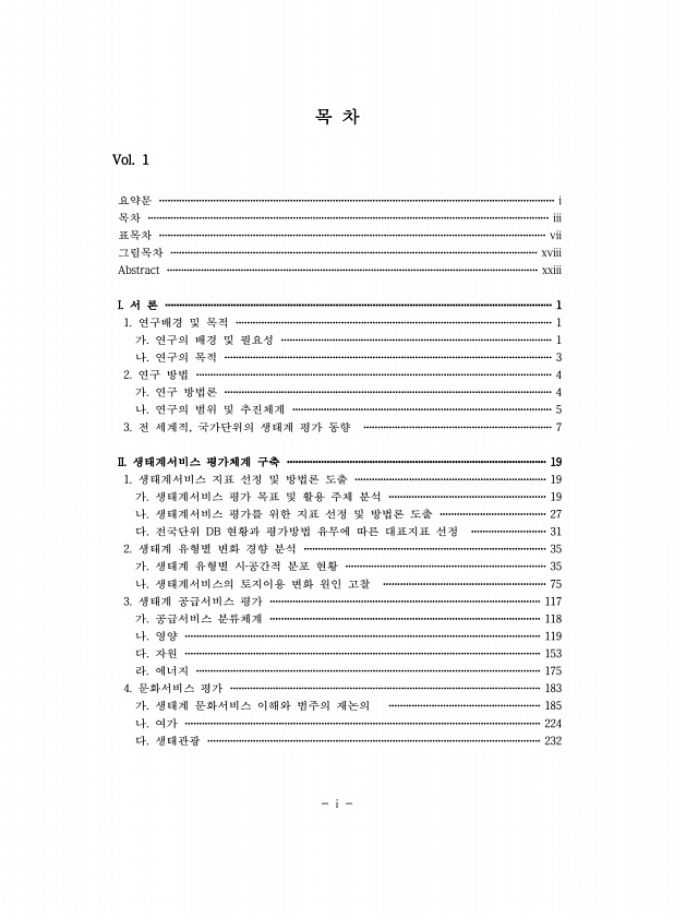 i 목 차 Vol. 1 요약문 ···········································································································································i 목차 ·············································································································································iii 표목차 ··························································································...
