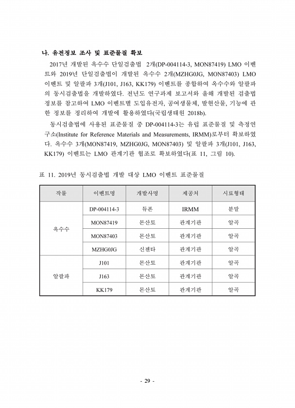 29 2017 2 DP-004114-3, MON87419 LMO 2019 2 MZHG0JG, MON87403 LMO 3 J101, J163, KK179 LMO , , , 2018b DP-004114-3 Institute for Reference Materials and Measurements, IRMM 3 MON87419, MZHG0JG, MON87403 3 J101, J163, KK179 LMO 11, 10 11. 2019 LMO DP-004114-3 IRMM MON87419 MON87403 MZHG0JG J101 J163 KK179