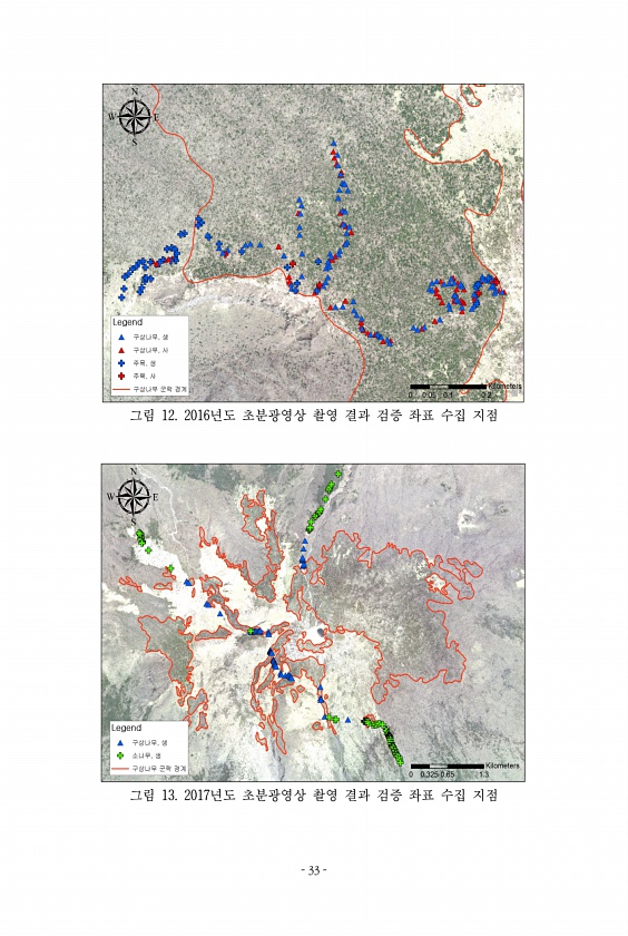 그림 12. 2016년도 초분광영상 촬영 결과 검증 좌표 수집 지점 그림 13. 2017년도 초분광영상 촬영 결과 검증 좌표 수집 지점 33