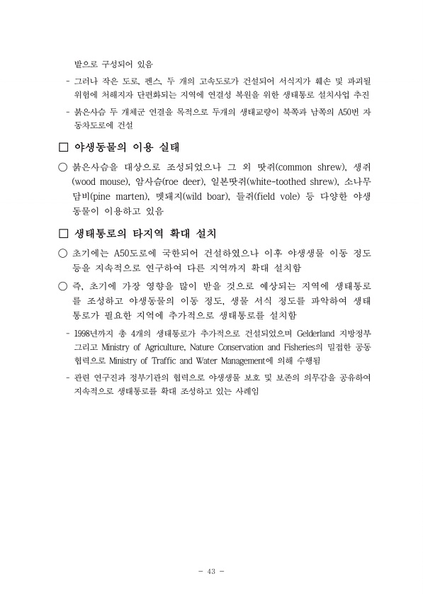 제목 : 서식지 파편화 분석 및 생태통로 기능개선 연구