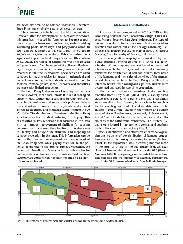 Materials and Methods This research was conducted in 2018 2019 in the Boon Pring Andeman Area, Sanankerto Village, Turen District, Malang Regency, East Java, Indonesia. The type of research was descriptive exploratory. Plant species identification was carried out at the Ecology Laboratory, Department of Biology, Faculty of Mathematics and Natural Sciences, State University of Malang, Indonesia. Ba...