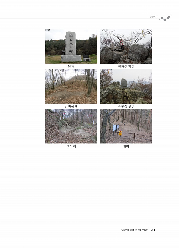 지 형 National Institute of EcologyⅠ41 늘재 청화산정상 갓바위재 조항산정상 고모치밀재