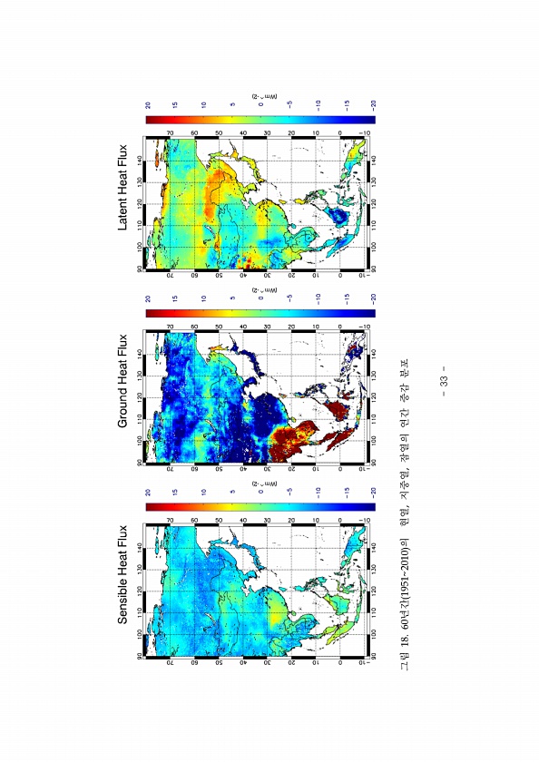 33 그림 18. 60년간 19512010 의 현열, 지중열, 잠열의 연간 증감분포