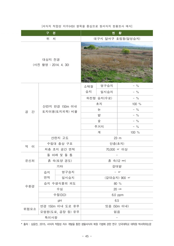 제목 : 생물서식(대체서식지) 제고를 위한 가이드라인 마련 연구