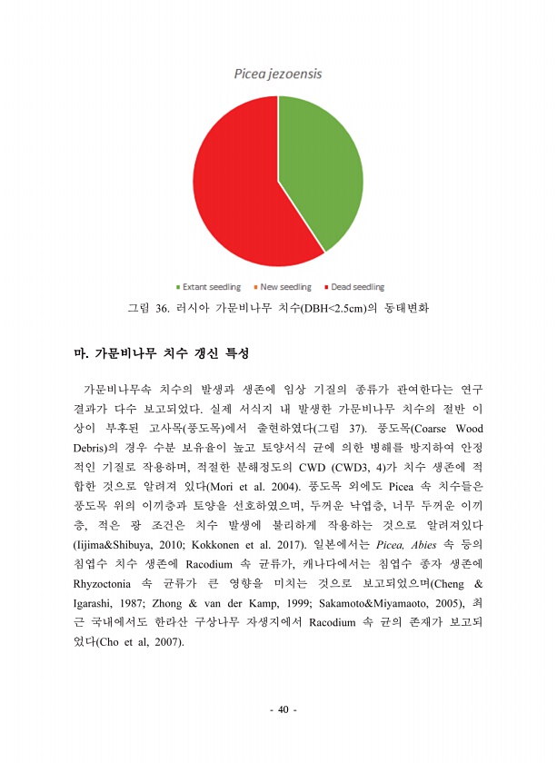40 36. DBH 2.5cm 37 Coarse Wood Debris , CWD CWD3, 4 Mori et al. 2004 Picea , , , Iijima&Shibuya, 2010; Kokkonen et al. 2017 Picea, Abies Racodium , Rhyzoctonia Cheng & Igarashi, 1987; Zhong & van der Kamp, 1999; Sakamoto&Miyamaoto, 2005 , Racodium Cho et al, 2007