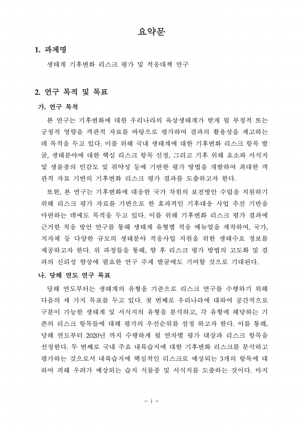 제목 : (2018) 생태계 기후변화 리스크 평가 및 적응대책 연구