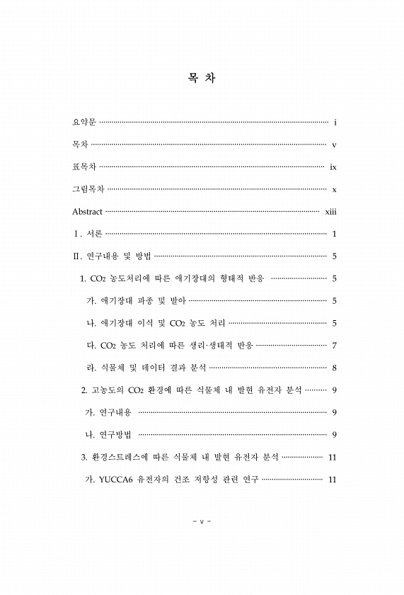 v 목 차 요약문 ················································································································ i 목차 ··················································································································· v 표목차 ·············································································································· ix 그림목차 ·······························...