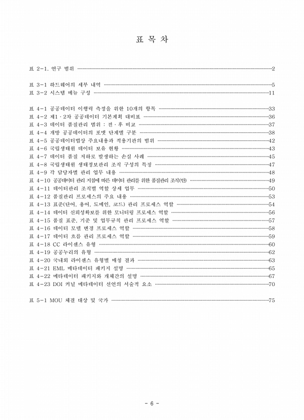 6 표 목 차 표 2-1. 연구 범위 ························································································································································2 표 3-1 하드웨어의 세부 내역 ···································································································································5 표 3-2 시스템 메뉴 구성 ··························································...