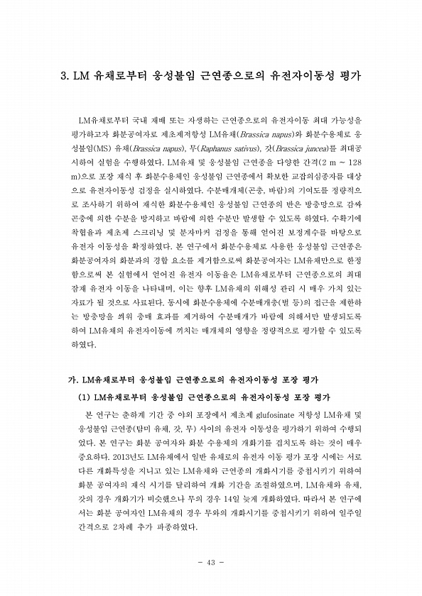 제목 : LM작물과 국내 근연종간의 유전자이동성 평가기법 개발. 3