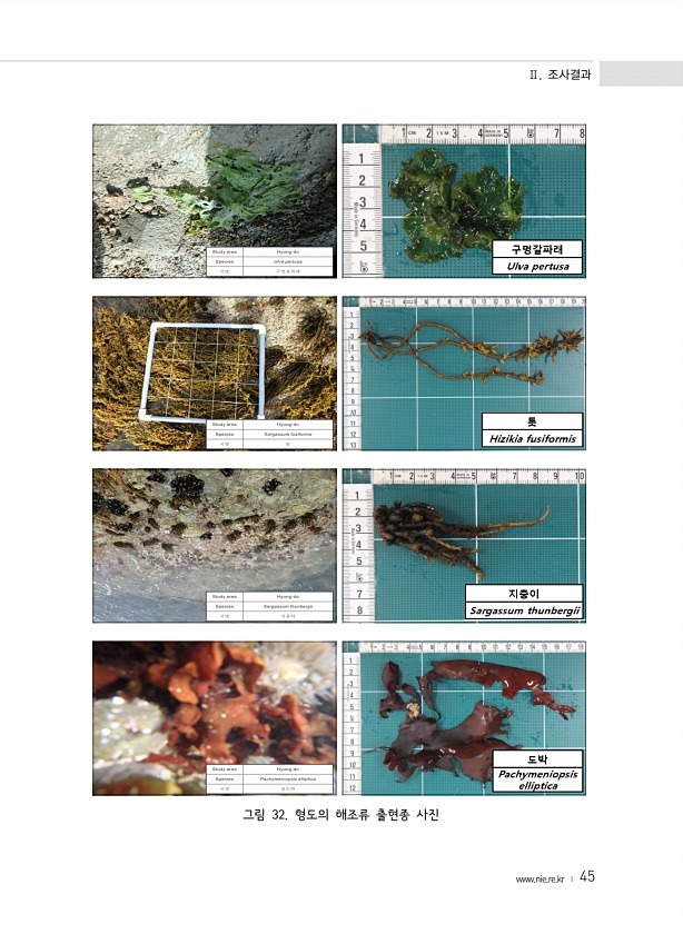 Ⅱ. 조사결과 www.nie.re.kr ? 45 그림 32. 형도의 해조류 출현종사진
