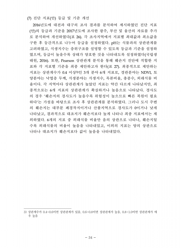제목 : 생태계 훼손지 및 복원지의 진단 평가와 회복력 증진 방안