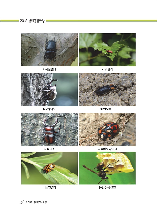 56 2018 생태공감마당 애사슴벌레 거위벌레 장수풍뎅이 애반딧불이 사슴벌레 남생이무당벌레 버들잎벌레등검정쌍살벌