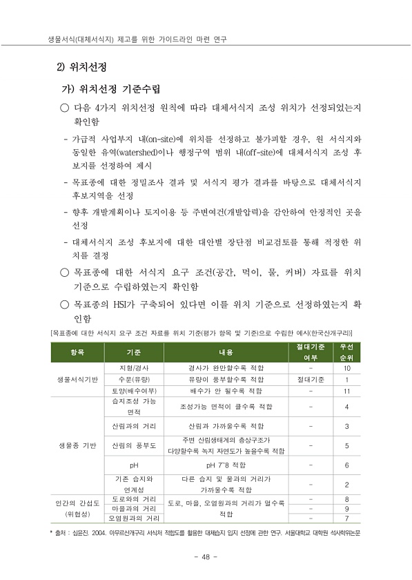 제목 : 생물서식(대체서식지) 제고를 위한 가이드라인 마련 연구