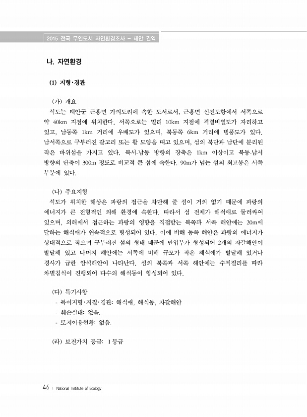 제목 : (2015) 전국 무인도서 자연환경조사 : 태안 권역