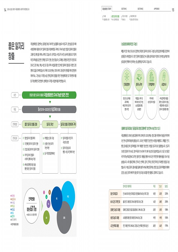 14 2018-2020 제2차 국립생태원 사회적가치경영보고서 국립생태원 STORY SECTIONⅠ SECTIONⅡ APPENDIX 15 192 인사말 국립생태원 소개 좋은 일자리 창출 4차 산업혁명 대응 이해관계자 참여 중대성 평가 프로세스 코로나19 대응 거버넌스 인재경영부 청년 등 신규채용 규모 확대, 비정규직의 정규직 전환 추진 사업부서 4차산업혁명 대응을 통한 신규일자리 창출, 국민참여형 사업으로 일자리 창출모델 개발 총무노무부 차별없는 처우 등 복리후생 수준 개선, 노동조합과 협력, 공생발전 지역사회 상생 일자리 발굴 지역협력부 청년 미취업자 비수도권 지역인재 장애인 대상자 채용 보훈 대상자 채용 시간선택제 채용 만 34세 이하청년미취업자 정원대비 3% 이상 의무 고용 블라인드 채용으로 35% 채용...