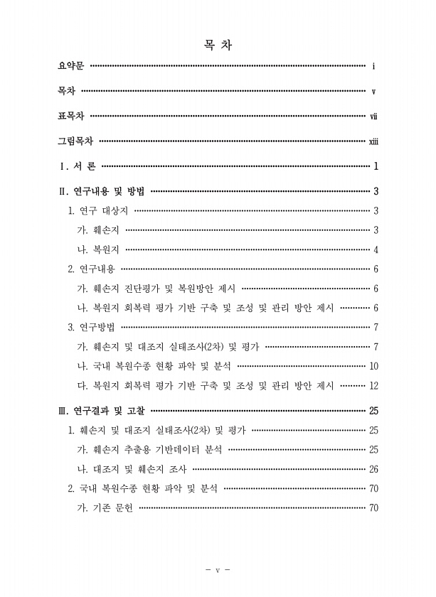 제목 : 생태계 훼손지 및 복원지의 진단 평가와 회복력 증진 방안