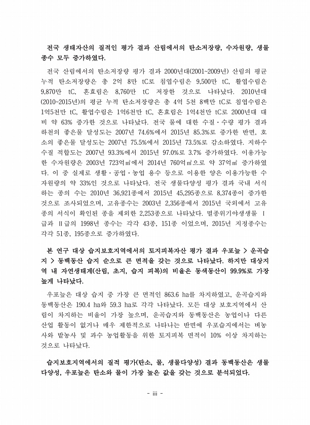 ii 라. 생태교육 ···················································································································250 마. 경관미 ·························································································································282 바. 유산 & 신성시하는 유산 영적/종교적 ······························································321 사. 소결 ··········································...