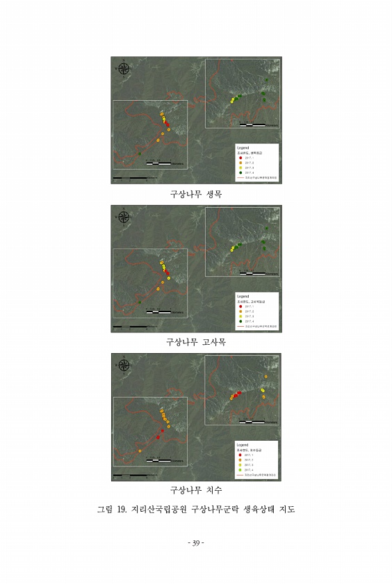 구상나무 생목 구상나무 고사목 구상나무 치수 그림 19. 지리산국립공원 구상나무군락 생육상태 지도 39