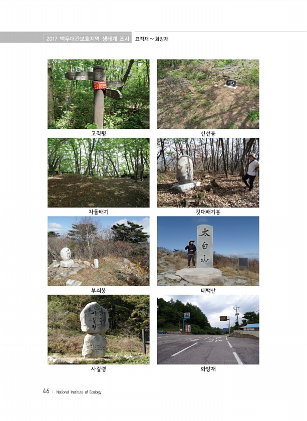 2017 백두대간보호지역 생태계 조사 묘적재 화방재 46 ? National Institute of Ecology 고직령 신선봉 차돌배기 깃대배기봉 부쇠봉 태백산 사길령화방재