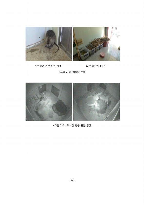 -30- 먹이실험 공간 입식 개체 보관중인 먹이자원 그림 2-6 섭식량 분석 그림 2-7 24시간 행동 관찰영상