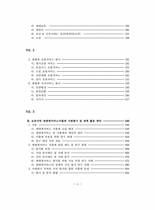 ii 라. 생태교육 ···················································································································250 마. 경관미 ·························································································································282 바. 유산 & 신성시하는 유산 영적/종교적 ······························································321 사. 소결 ··········································...