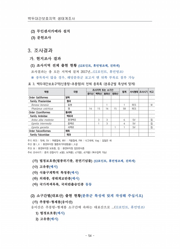 제목 : 백두대간보호지역 생태계 조사 지침서