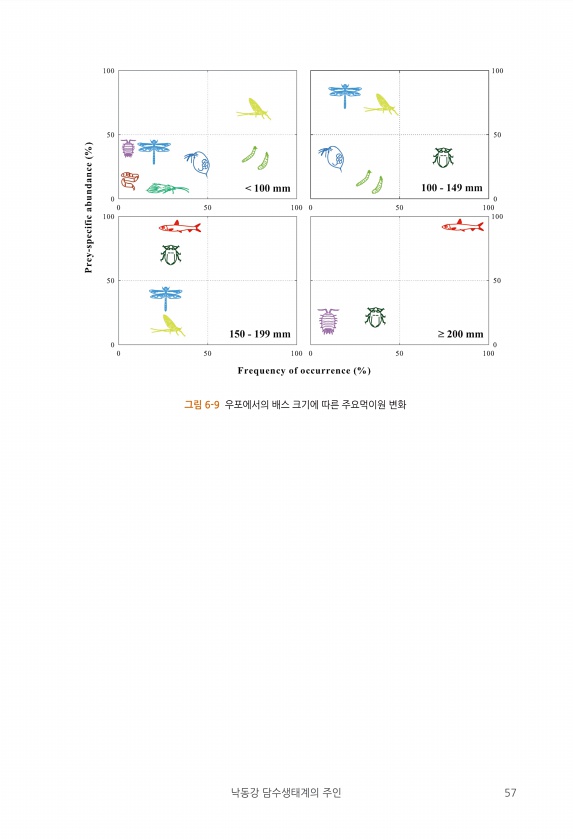 낙동강 담수생태계의 주인 57 그림 6-9 우포에서의 배스 크기에 따른 주요먹이원변화