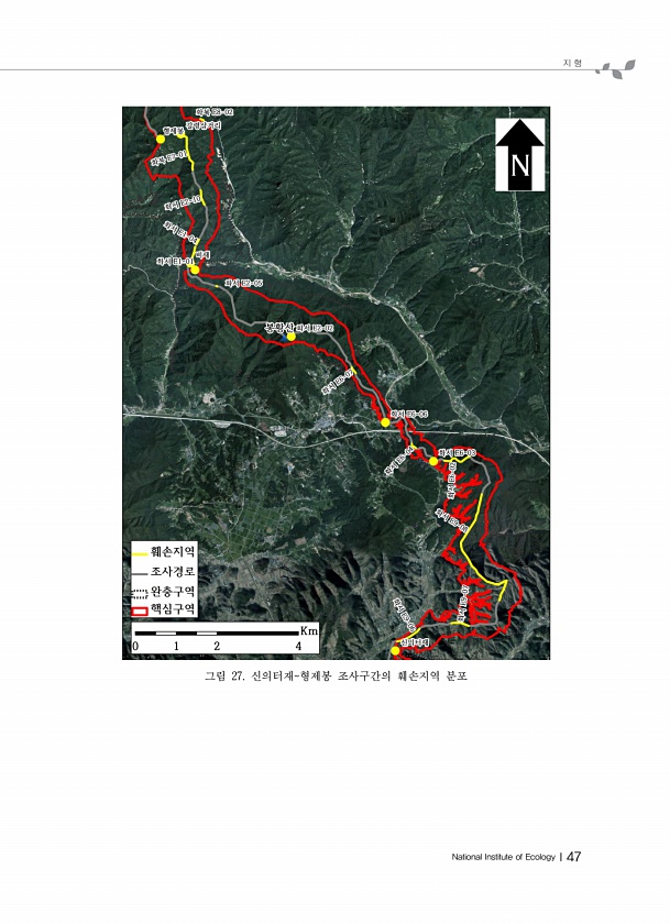 지 형 National Institute of EcologyⅠ47 그림 27. 신의터재형제봉 조사구간의 훼손지역분포