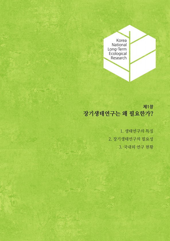 제1장 장기생태연구는 왜 필요한가? 1. 생태연구의 특징 2. 장기생태연구의 필요성 3. 국내외 연구 현황 Korea National Long-Term EcologicalResearch