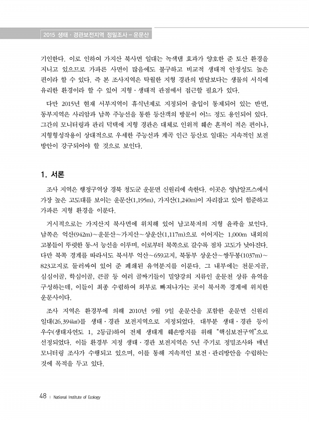 제목 : (2015) 생태·경관보전지역 정밀조사 : 운문산