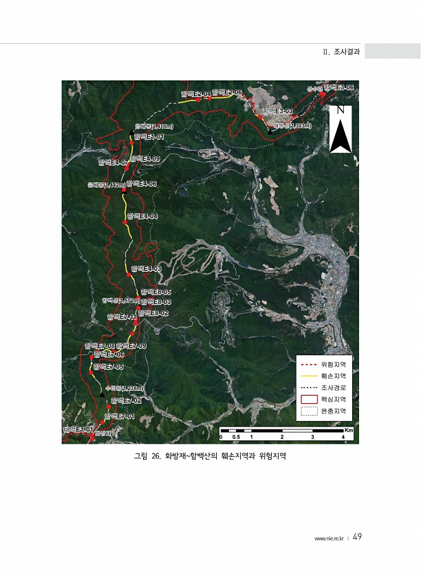 Ⅱ. 조사결과 www.nie.re.kr ? 49 그림 26. 화방재함백산의 훼손지역과위험지역