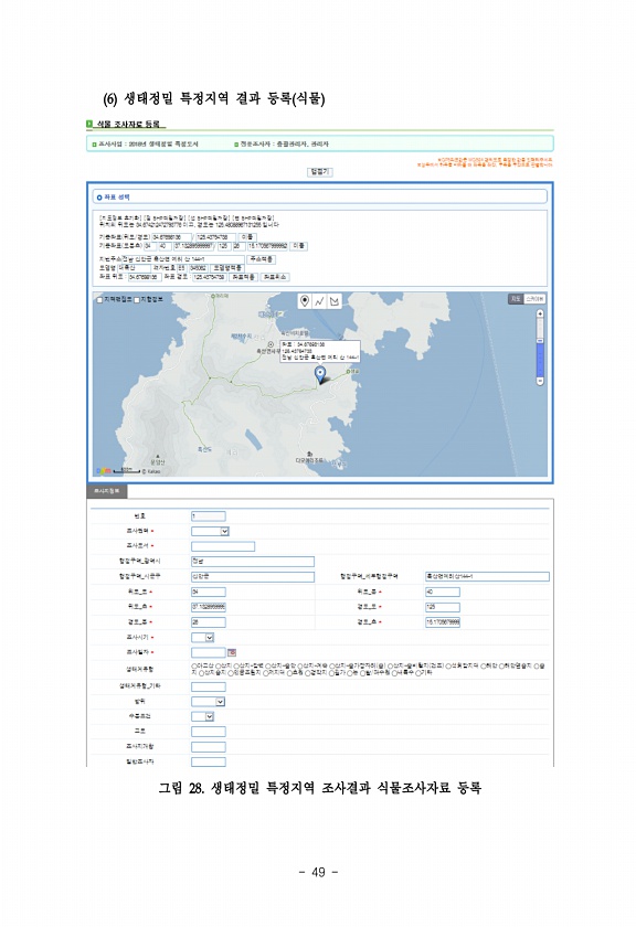 49 6 생태정밀 특정지역 결과 등록 식물 그림 28. 생태정밀 특정지역 조사결과 식물조사자료등록