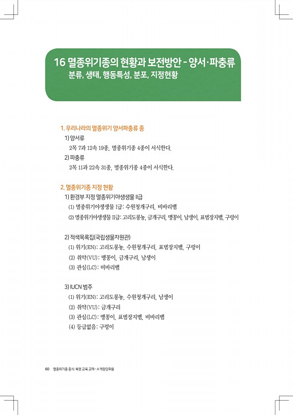 제목 : 멸종위기종 증식·복원 교육 교재(A 역량강화용)