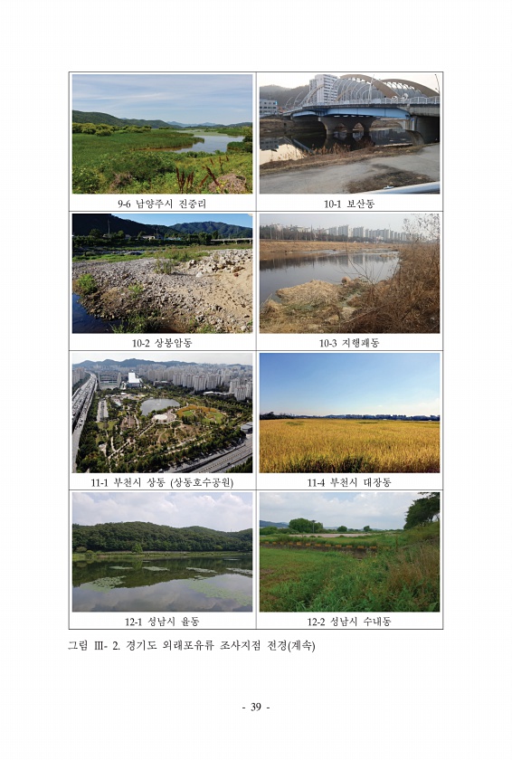 I. 총 괄 www.nie.re.kr ? 51 그림 24. 흰수마자 상 및 서식지 전경 하 대구지방환경청? 한국수자원공사 2017 , 한국수자원공사 2018 에 보고 되어 있는 하 상 입자 크기와 흰수마자 출현 여부에 대한 자료를 상관관계 분석을 실시하였을 때 유의 미한 통계적 결과가 도출되지 않았음. 이는 흰수마자 하상 입도 분석을 위한 채집망이 매 우 가늘고 매우 협소한 미소서식지만을 대상으로 샘플했기 때문이며, 이후 서식지 주변에 서 랜덤하게 샘플을 해서 모래 입도와 개체수간의 상관관계 분석을 실시하는 것이 타당할 것으로 판단됨. 흰수마자의 서식에 영향을 줄 수 있는 하상 입자 크기는 2015년부터 조사된 대구지방 환경청, 한국수자원공사 2016, 2017, 2018 의 자료를 참조하여 분석하였음. 1...