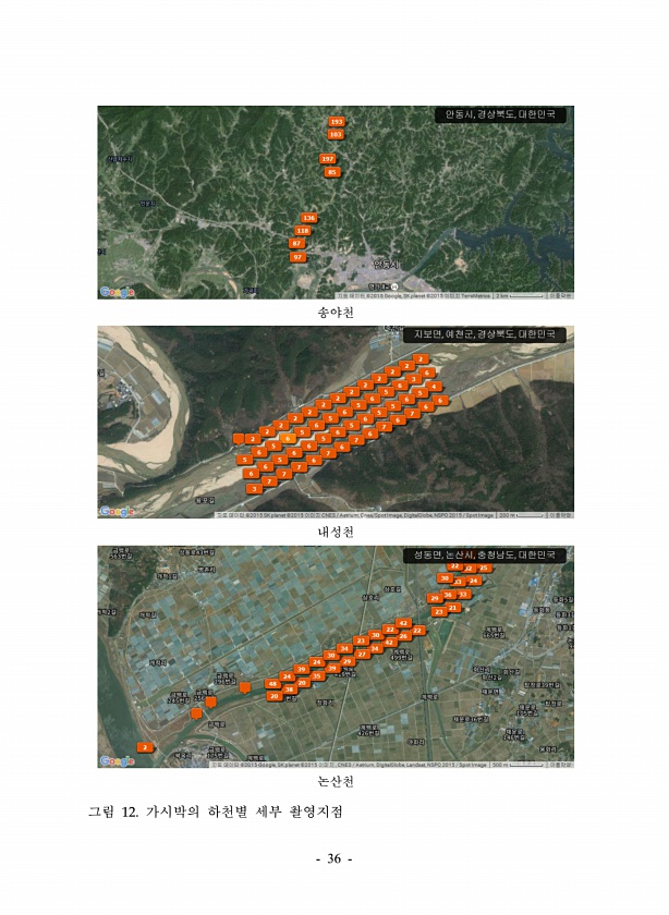 36 송야천 내성천 논산천 그림 12. 가시박의 하천별 세부촬영지점