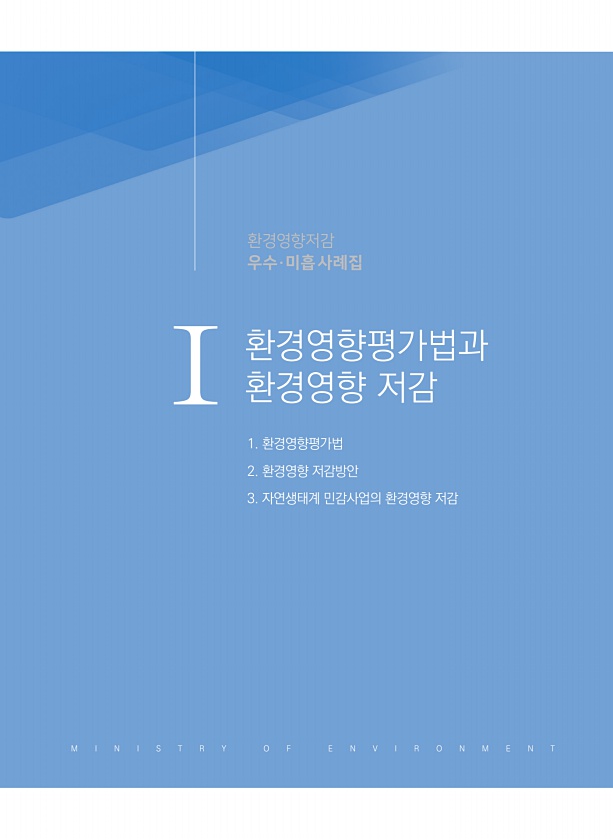 환경영향평가법과 환경영향 저감 환경영향저감 우수·미흡사례집 1. 환경영향평가법 2. 환경영향 저감방안 3. 자연생태계 민감사업의 환경영향 저감 Ⅰ M I N I S T R Y O F E N V I R O N M E NT