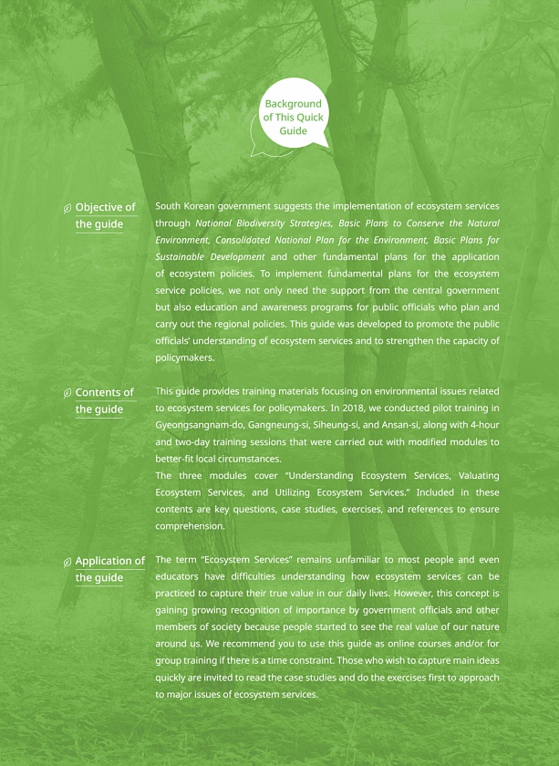 제목 : Ecosystem services for implementing environmental policies : a quick guide for policy makers