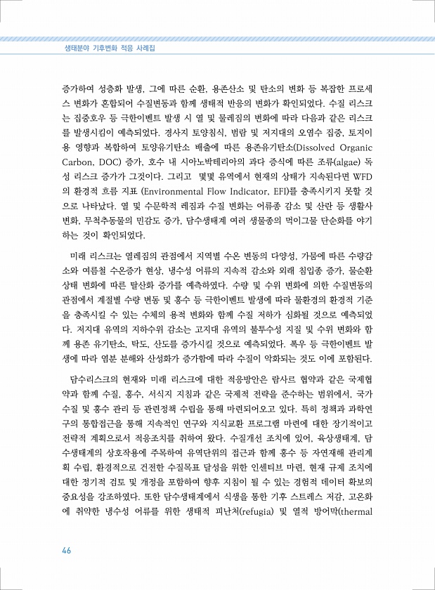 제목 : 생태분야 기후변화 적응 사례집 : 국내외 생태분야 기후변화 적응방안의 흐름과 발전방향